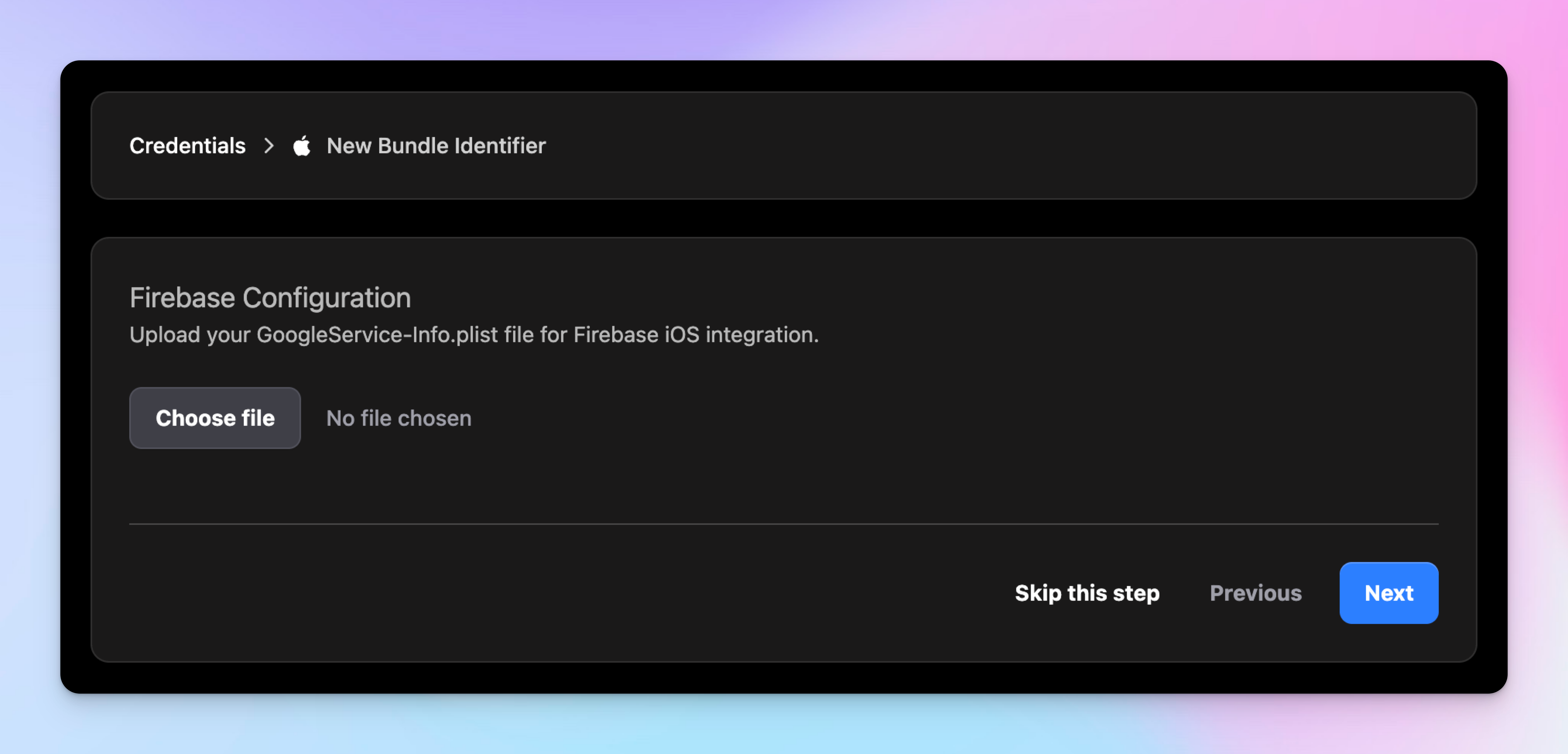 If you intend to use Firebase Cloud Messaging (FCM) to manage your Push Notifications across both iOS and Android, you will need to upload your FCM credentials to have them injected into your builds.